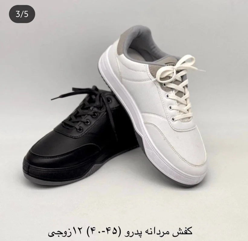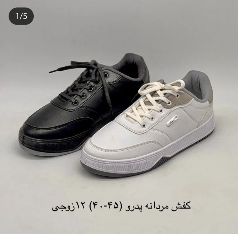 مشخصات محصول. جنس زیره تزریق مستقیم پیو. جنس رویه فوم درجه یک. رنگ بندی مشکی و سفید. سایز بندی از رنگ مشکی ۴۰ ، ۴۱ ، ۴۲ و ۴۵. و از رنگ سفید سایز ۴۰ ، ۴۱ ، ۴۴ و ۴۵ موجود است