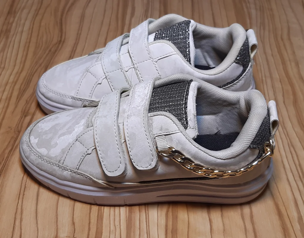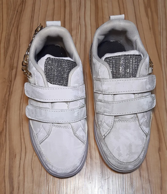 کفش اسپرت دخترانه زنجیر دار زیره ایربولینگ ( عدم زرد شدن زیره ) از رنگ ، صورتی فقط سایز ۲۷ و ۲۸ و از رنگ سفید فقط سایز ۳۱ موجود است. قابل توجه مشتریان عزیز اینکه قالب این کفش بزرگ میباشد و اگر کفش پای کودک شما ۲۸ میباشد سایز از این کفش رو ۲۷ انتخاب بفرمائید.